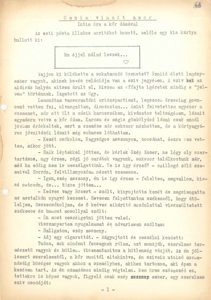 Vajon ki küldhette a sokatmondó üzenetet? Szolid életű legényember vagyok, akinek kevés relációja van a szív jegyében. A szív az aláírás helyén mitsem árult el, hiszen az effajta ígéretek mindig a „jelben” történnek. Izgatott az ügy.