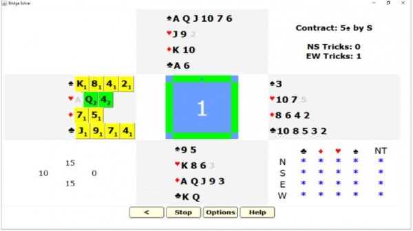 Pedig ez a két hívás buktatta el a szlemet. Bármi mással indul, majd bármi mást hív, mint kőrt (igen, most a kőr négyes is működik, de az nem elég látványos) a parti teljesíthető, tessék csak kipróbálni!