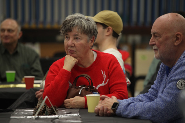 Most már nagyon úgy néz ki, hogy sikerült hagyományt teremteni, és az egyik hosszú decemberi estét a bridzsév lezárásával ünnepelni. 39 pár jött, sokan különböző klubokból, talán először járva a Récsei Centerben, a szövetség versenytermében. A résztvevők jelentős része valami kis süteménnyel, finomsággal megpakolva érkezett, hogy jó hangulatban együtt töltsük el az estét. Az elnöki beköszöntő is a jó hangulatot kérte és remélte a résztvevőktől – és ez a várakozás teljes mértékben bejött. Az elnöki köszöntő szerkesztett változatát itt is olvashatjátok. (Kelen Károly 2025 életműdíjasa – Fotók: Révai Sára)